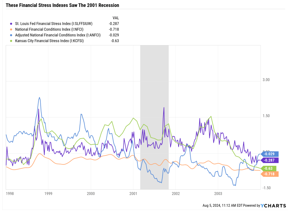 In other words, below-average financial stress has never been recorded if the economy was contracting.